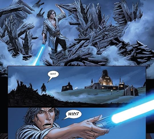 The narrative arcs of Ben, Luke, and Snoke are all very compelling, which is why I picked-up this comic to begin with. However, this issue focuses inordinately on three other Jedi student characters that Soule, the writer, added specifically for the series. While I'm not opposed to new characters, I bought this book to read about Ben and Luke, NOT some trio of padawans I don't care to remember. I would be less opposed if their story took up a page or two; instead, their story takes up at least half of the book.