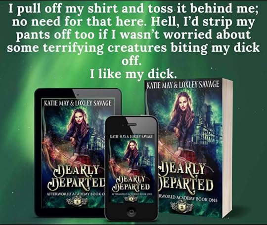 Dearly Departed is book one of a four book series by bestselling authors, Loxley Savage and Katie May. This is a reverse harem romance meaning that the main character won't have to choose between her love interests. This is medium-burn and does contain strong language and sexual themes. Oh, and death. Lots and lots of death. Book one will end in a cliffhanger.