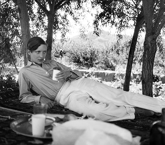 I put my glass down by my deckchair and went out. The door was just a frame with a mosquito net stretched across it. The sensation was familiar, pushing aside the thin partition that separated a room filled with peaceful, lamplit warmth from the great surrealism that lay outside—the moonlight, the gleam of the desert, the strips of ground you could cross up to the starkly white, rocky ridges, the place of royal tombs where ibex spent the night and foreign ships with paralysed sails lay for eternity.