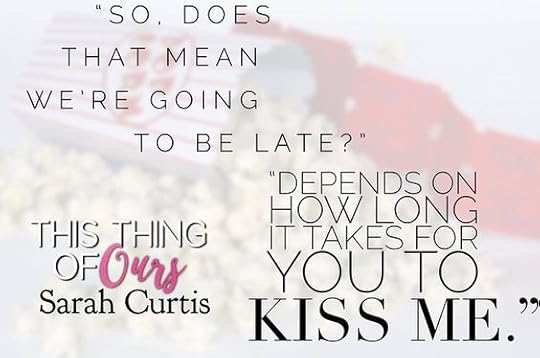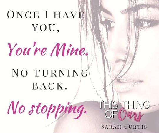 With her seamlessly flowing narrative; witty dialogue; and her strong, sexy, protective, and possessive hero, Sarah Curtis held me captive. This Thing of Ours was the perfect mix of dark and light, sweet and sexy. I wanted to cry, I cheered, I laughed, and I fell in love with Gabriella and Marco.