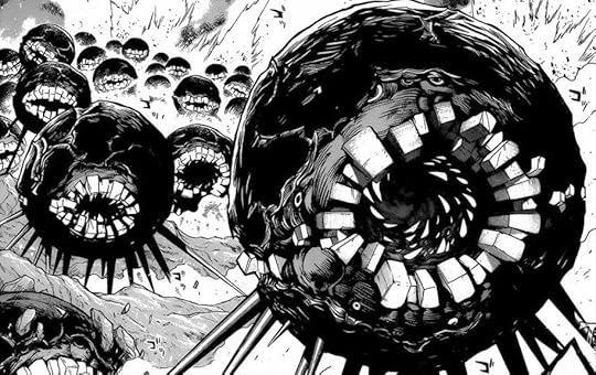 I didn't know much about the plot before reading these, I just knew that they had good ratings on Goodreads (4.17 stars MY ASS) and were pretty much acclaimed in the manga-loving community. I trusted that. Big mistake. So here's a quick rundown of the plot: When the alien Mimics invade, Keiji Kiriya is just one of many recruits shoved into a suit of battle armor called a Jacket and sent out to kill. (Where the Mimics come from is never explained nor how they exactly work and why they want to take over the world; the world building in this manga series is so lacklustre, I can't even.)