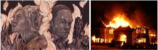“She might have been a statue, a ghost, ash-smeared in the darkness. She was a young girl, all knobby knees and fresh from the burned remains of her home. She was the light of a star and the end of the world in the shape of a woman.“