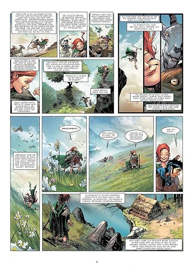 Les personnages sont caricaturaux avec un tandem jeune fille espiègle / guerrier bourrin et bourru vu 100 fois. Les dialogues m'ont rappelé mes copies de 3ème et nourrissent une histoire assez niaise dont le final est franchement invraisemblable. J'ai pourtant lu avec un plaisir certain, principalement grâce au dessin, moderne et appliqué, quoique peut-être trop propret.