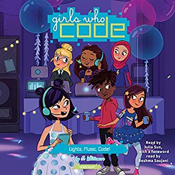 Lights, Music, Code! Focuses on creative coding. The middle school Coding Club is tasked with designing a feature for the upcoming school dance, and the five girls are in charge of the project—coding the lights and music. As part of one of the subplots, Maya also utilizes wearable technology to help out a friend. Along the way, their coding strategies are explained to the reader; therefore, the reader also learns a little about coding, which may inspire them to become involved in STEAM activities or clubs in their schools.