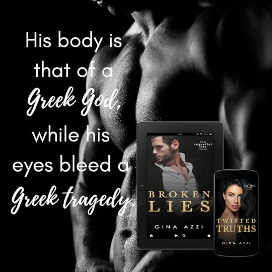 'Broken Lies' has broken me - what have you done to me Gina Azzi. I turned the last page of this first book in the two book series and just wanted to keep going -thank god the next one and conclusion 'Twisted Truths' is out at the beginning of April.
