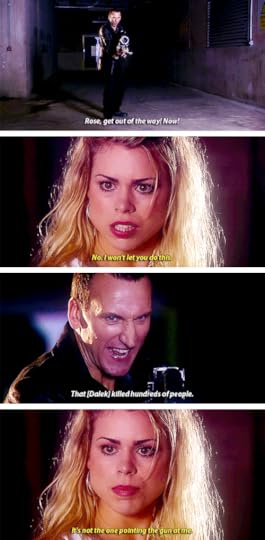There are so many reasons why I love this story. My brain is too much of a jumbled mess to explain everything. However, the strange kinship that's found between the Doctor and Dalek—each the sole survivor of their species following the Time War— that's the best kind of "Doctor Who" content for me. These enemies are hell-bent on the destruction of one another, and yet, in a completely unexpected way, their foils transform into common ground. Thanks to Rose, the Dalek learns human emotion. The Doctor—who has sworn against weapons—carries a gun, because he has a shot to end the Time War, once and for all. Also, the whole exchange between the Dalek and the Doctor on the video cams???? AGHHHHHHHHH IT JUST MAKES ME SO EMOTIONAL!!!! On my life, this scene is one of the greatest in all DW. Y'all have no idea how many times I've rewatched it. Anyway, link plug cause everyone needs to do the same: https://www.youtube.com/watch?v=92DXk...