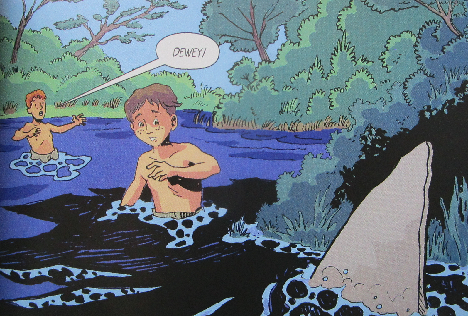 "I like that Chet warned his friends that there was a shark in the creek they were swimming in. He saves their lives by warning them but sadly he had part of his own leg chewed off." -Cadee, age 9