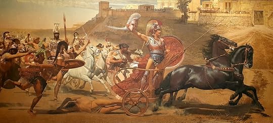 "Ajax and Menelaus have rescued the poor, heavy, mangled body.... Achilles washes the dear flesh. He tells Patroclus he will not sleep till Hector is dead. Nor will he eat.