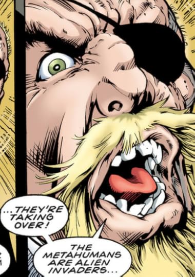 W związku ze strachem przed metaludźmi powstają teorie spiskowe, że wszyscy są kosmitami. Tutaj bezpośrednio dostają pozaziemscy członkowie Ligii – Marsjanin i Thanagarka (Hawkgirl). Ale nie tylko oni przecież są obcy. Aquaman jest monarchą obcego gatunku. Zielona Latarnia agentem obcych. Inność można znaleźć w każdym, o ile się chce.