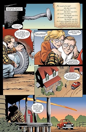 In 'The Nail', a flat tire prevents Ma and Pa Kent from getting to Kal-El's ship when it crashes. This means that Superman doesn't debut as early as he originally did, Lex Luthor becomes the mayor of Metropolis, and metahumans and aliens are almost as hated in the world as the X-Men. We get some other stories involving Jimmy Olsen, Batman, Green Arrow, and the Green Lantern Corps.