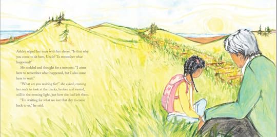 A young Mi'gmaq girl meets her uncle on the way home from school, and when she asks him why he looks so sad, he tells her the story of being taken away on a train to a residential school when he was a child. The subject matter is handled in an age appropriate way, though it could have been a little longer. The artwork is nicely done, with brighter colors for the present and grays and blues for the past. A heartbreaking addition to the recent books about residential schools in Canada; I hope U.S. publishers will follow suit and publish books about our country's residential schools as well.