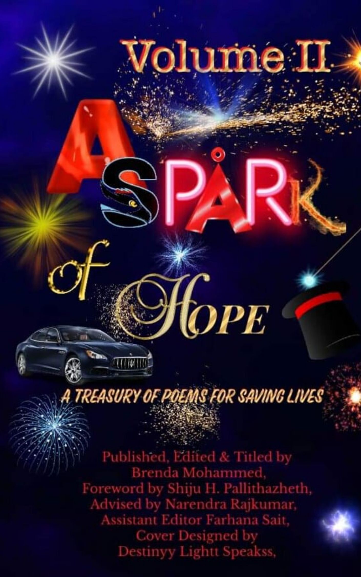 The Anthology starts out with a great foreward written by Shiju H. Pallithazheth, introducing the Anthology with the creators of this book, which are Brenda Mohammed, Narendra Rajkumar, Farhana Sait and Destinyy Lightt Speakss who designed the cover. He also tells of how many people make the mistake of taking their lives, because they feel it would be better if they were no longer alive and the catastrophe it places on the families and loved ones. "A Spark of Hope volume II" will help change the minds of those feeling alone or depressed, because life is worth living!! Shiju also shares a poem "God's Last Letter" where he states you may feel shattered and overwhelmed, yet be strong and don't give up because it is always for later when God sends an invite called His last letter.