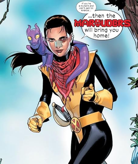 This was good! Kitty Pryde...Kate? Kate Pryde can't use the gates to get access to the mutant island Krakatoa. So, Emma Frost uses this little glitch in the system to get Kitty Kate to head up the Marauders - and some other spoilery stuff.