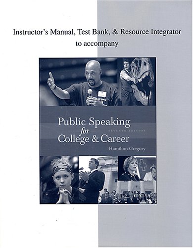 Instructor's Manual, Test Bank, & Resource Integrator to accompany Public Speaking for College & Car