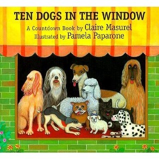 Ten dogs, all of different breeds, are in a shop window. As people come by, each one chooses a dog that is perfect for them. This is counting from 10 to one and it’s nicely illustrated.