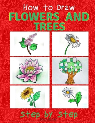 Despite what the title says, in this book, the author only shows you how to draw flowers. I suppose that some directions for how to do stems and leaves could be extrapolated and used to draw trees, but that was not specifically addressed in this book. This book had a few issues beyond this as well. One of these is the same as a problem in the author's book on sketching for beginners. As in that book, in this one, she has you do a contour sketch first to lay out the different major elements of the drawing. When you yourself as the artist do this, it is supposed to be light so you can easily add color on top of it. However, in this instructional book, the author should have made this contour sketch dark enough so we the readers could see what she was doing in each step. Unfortunately, she did this contour sketch as light as you would do it if you were truly drawing the flowers yourself, making it very hard to see in the photographs of the sketches. But this book has an even bigger problem. The subtitle of this book promises that it will contain step-by-step instructions. I always assume that means each step will be shown in the order in which it's done. That didn't happen here. The author took a leap forward in the painting, did a few steps, and then jumped back to show how some of the earlier sketching was done. I thought it was bizarre that it went from very faint colors all over and no coloring whatsoever for the stem and leaves to suddenly being full color everywhere. If you call a book step-by-step instructions, they should indeed be step by sequential step! Because of the difficulty seeing the underlying foundational sketch and this strange leaping around within the steps, I do not feel like I can recommend this book.