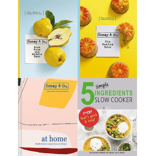 Honey and co food from the middle east, baking book, at home [hardcover] and 5 simple ingredients slow cooker 4 books collection set. Honey & Food from the Middle East This is our food, this is our restaurant - fresh fruit and vegetables, wild honey, big bunches of herbs, crunchy salads, smoky lamb, bread straight from the oven, old-fashioned stews, Middle Eastern traditions, falafel, dips, and plenty of tahini on everything. Honey & The Baking Book Our day is marked by what comes out of the pastry section, and there's always something good on the sticky buns full of cherries and pistachios in the morning; a loaf of rich dough rolled with chocolate, hazelnuts and cinnamon that has been proving since dawn and comes out of the oven fresh for elevenses. Lunch is a crisp, crumbly shell of pastry filled with spiced lamb or burnt aubergine, and at teatime there are cheesecakes and fruit cakes, small cakes and massive cookies - so many cakes that it's hard to choose one. Honey & At Home - Middle Eastern recipes from our kitchen Brought to you by the award-winning chefs behind the Honey & Co. empire, Sarit Packer and Itamar Srulovich present delicious Middle Eastern dishes that are easy to make and a pleasure to serve.From breads to bakes, salads to sweets, there is something for everyone in this celebration of Middle Eastern cooking. 5 Simple Ingredients Slow Cooker - F*ck That's Quick & Low Calorie Cookbook For Weight Loss & Health Anyone with a busy life knows that mealtimes can be tough. You may be a parent who needs to feed the family, single with a demanding job, a student on a budget or just simply out of fresh ideas to keep yourself on track. Thankfully there's a solution that will help. The slow cooker is the lifesaver you've been looking for.