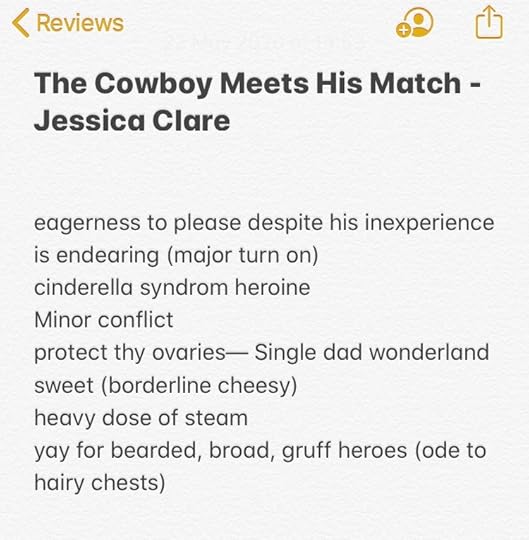 The Cowboy Meets His Match by Jessica Clare. was just what I needed! Anytime I am in a slump, a cowboy romance gets me right back out. I loved the town of Painted Barrel, Wyoming and all the side characters. Becca, Hank, and his daughter Libby were definite stars of the show. Hank started out a bit gruff, but he definitely grew on me. I loved the give and take of their relationship and their growth as a couple. And of course Libby was super adorable. The opening scene with her was fantastic. This book has just the right amount of steam and was fun to read. Can't wait for the next book in this series!