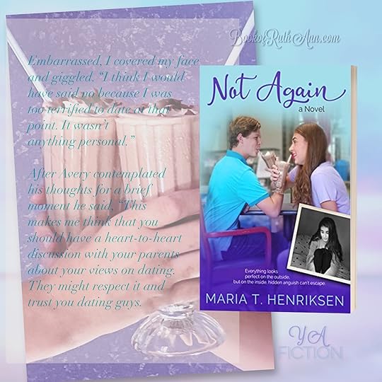 I just got finished reading Not Again by Maria T. Henriksen , and I definitely recommend this book to all teens and adults. The struggles, and spiritual growth. Learning to forgive, yourself as well as the ones who have caused your grief. Learning to love, relationships and friendship. This book was definitely a page turner, and I shed a few tears. It will lift your spirits and allow you to fall in love with the characters