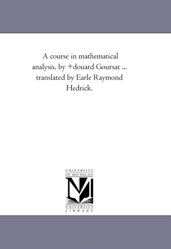 A course in mathematical analysis, by +douard Goursat ... translated by Earle Raymond Hedrick.