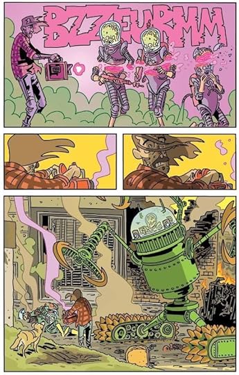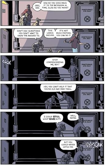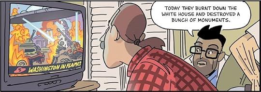 The juxtaposition of a father and son squabbling while an alien apocalypse is occurring around them is fun. However, I couldn't get past the art. The aliens were fine, but the main characters often looked like they had been sketched on the back of a cocktail napkin. Some pages I couldn't even tell you what happened on them.