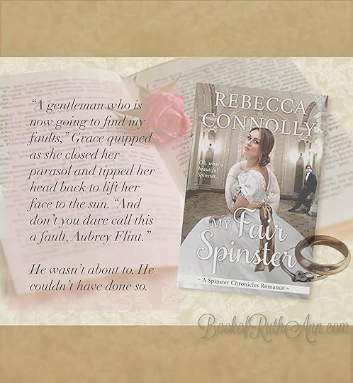 Yay for a story for Grace. Oh how I love the Spinster books and the way the author writes them. Each character is a joy. As I have mentioned before, Rebecca Connolly is the banter master. She writes it so well. How hard would it be it live in a time that being unmarried is a character flaw. Each Spinster book I read, my heart breaks a bit for how these amazing ladies are treated in society and by their own family. The author does a great job with this topic. As in the other Spinster books, and in My Fair Spinster, friendship is a treasured thing. I love the relationships of the ladies.