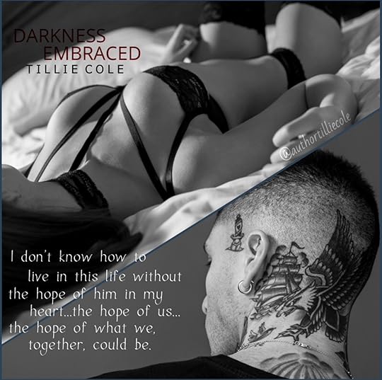 “He was worshipping me; cherishing me. Trying to convince me that I belonged with him."Overall, I am a huge fan of Tillie Cole and the entire Hades Hangmen Series. If you enjoy dark romance and MC love, you do not want to miss Darkness Embraced!