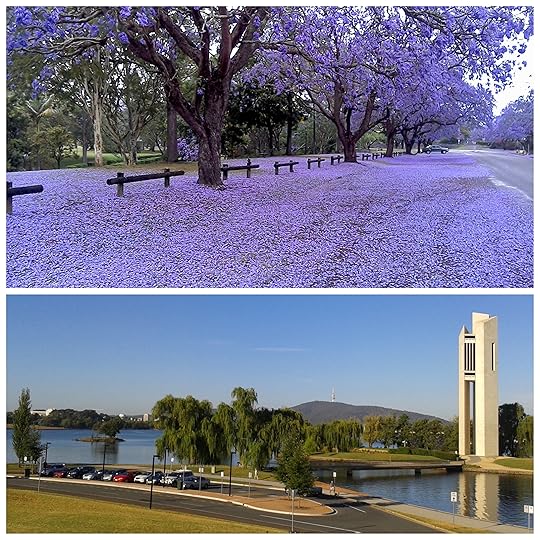 Of all the locations, I particularly enjoyed envisioning the protagonists sitting under Canberra’s jacaranda trees and walking around Lake Burley Griffin.