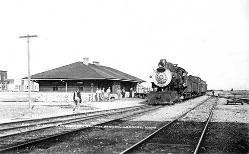 Un treno della ferrovia Gilmore & Pittsburgh fermo al deposito di Leadore, Idaho, agosto 1912.