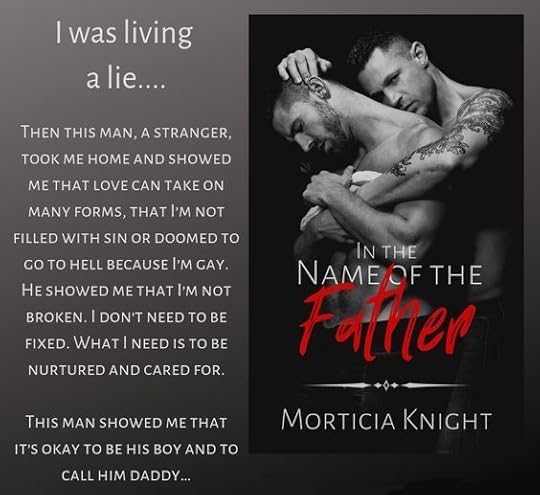 Morticia Knight lays the foundation for an incredible romance in the first book of her Father series. In the Name of the Father tells the heartbreaking story of Seth, who is attempting to escape the nightmare of his past and claim a life for himself. And Malcolm, a daddy who has tragically lost his boy to cancer, and has closed himself off to any possibility of a future with another man.