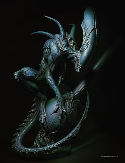 Sometimes I crave touch so badly, I hug myself with my own tail, just to feel the squeeze, to be able to pretend, even if for a somewhat unsatisfying moment, that I’m being touched by another person.I love a good sci-fi romance where the alien’s are actually alien looking. Although, I couldn’t picture the actual alien from the Alien movies that Milo based her character on because yuck.