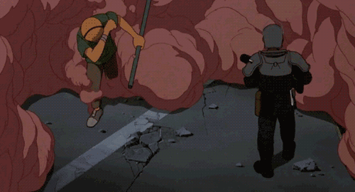 The characters in the manga are more catalysts for moving setpieces than they are invested back stories and experiences. One thing that I mentioned in my film review is that Kaneda and Tetsuo’s relationship is the primary focus of the movie, and it made the two of them the most interesting part of the story due to their entwined pasts. The bike scene and the buildup given to Tetsuo throughout the film make him a much more compelling character to watch then read. His inferiority complex is his ignition switch in the manga too, but his intent is all over the place to the point where he is rabid with power and exists to move the plot rather than be analyzed.