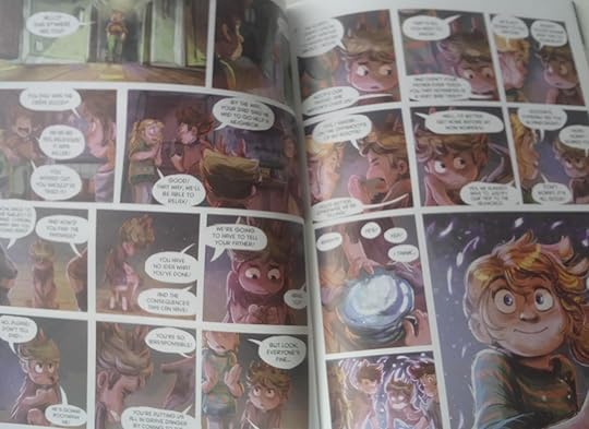 Wow, I still love this comic book so much. I even think I'm in love with it. The drawings were again asolutely beautiful, colorful and full of life. The story was very cute. We follow Nola but this time in her world and not in Pandorient. There is adventure, action as well as friendship so what more could we ask for. We learn a little bit more about Nola's mom but not enough for my taste, there are still a lot of mysteries around Hanna. I thought that the mystery around the strangers entering Nola's world was a little bit quickly solved but I guess for the little ones it's a good pace. The end is not full of suspense but still makes you want to read the next volume. I can't wait for it to be out. I recommend it to absolutely everyone.