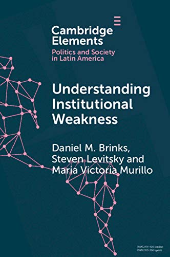 “Understanding Institutional Weakness” (Cambridge Elements – Politics and Society in Latin America, 2019), by Daniel Brinks (UT Austin), Steven Levitsky (Harvard) and Maria Victoria Murillo (Columbia), is a short booklet that synthesizes multidisciplinary research on institutional weakness in Latin America –exactly as the title promises. Throughout this book, institutions are defined as “the humanly devised constraints that shape human interaction” (following Douglass North’s conceptualization), and *strong* institutions are understood as institutions that set nontrivial goals and achieve them.