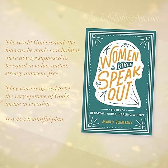 I have been looking forward to reading this book and it did not disappoint my expectations. Marlo focuses on women's stories, their voices and shows that we can find hope, healing and understanding in God's word and that our stories are represented there. She connects these women's stories with real life examples of the abuse and pain women have to endure today. She does so by giving us the perspective of each woman, by imagining what she would tell us and what she felt in her situation.