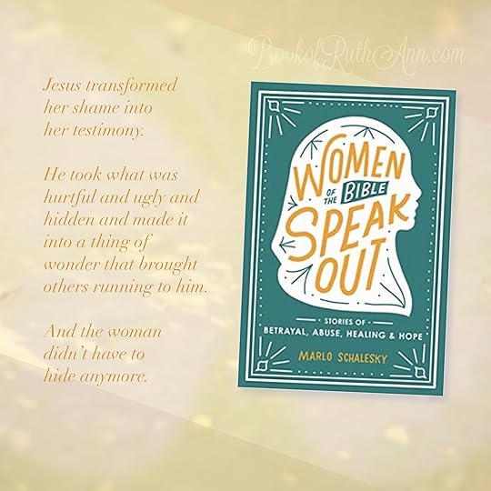 Schaesky takes creative license with each of the biblical characters, exploring what they might have thought and felt, and yet, I think she does it in a way that is true to the biblical text and the human experience. As I read, I certainly identified with many of the women, and I found that Schalesky drew together truths from God's Word that brought me hope as well as hope for healing from my own hurts and trauma.