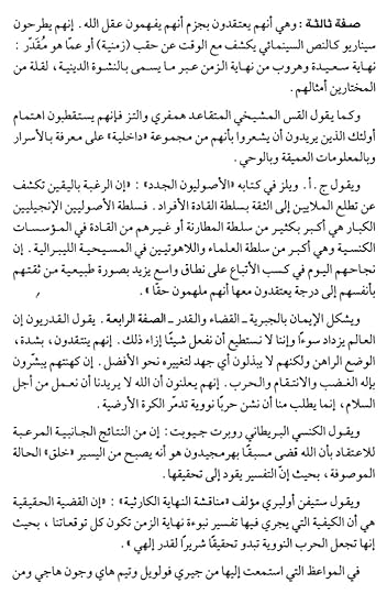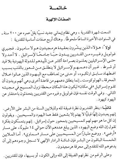 هذا الكتاب يجب أن يقرأه كل انسان من جميع الأديان! فالذي يحصل في العالم أمر جلل وعظيم؛ فإسرائيل مع القدريين - وهي عقيدة مسيحية جديدة تتبنى نظرية نهاية العالم- يسعون لنهاية العالم .. وينتظرون معركة هرمجيدون التي ستأتي في نهاية العالم .. ولن تأتي هذه المعركة حتى يكون لإسرائيل دولة ووطن وحتى يبنون الهكيل الثالث ويضحون فيه .. وعندها سيأتي المسيح ليقضي على اليهود! وهذه هي تحديداً مصلحة المسيحين في دعم اليهود مع كرههم لليهود إلا أنهم يسعون لإقامة دولة إسرائيل .. لما سيترتب عليها من قدوم المسيح .
