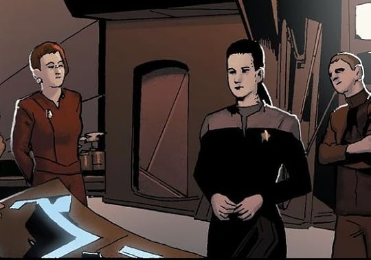 That's her season 7 hair, right? But this can't take place during season 7 because Jadzia looks like, well, Jadzia. And then the plot thickens, because half way through Kira switches back to her season 1-6 hair (minus the pilot):