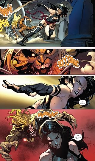 The team is an oddball mix of Havok, Orphan-Maker, Nanny, Scalphunter, Empath, Wild Child, with Psylocke (Kwannon, not Betsy) as their babysitter/team leader. I was not enthused about this team at all when I first heard the line-up, but I was shocked by how much fun their dynamic was. This book is what Suicide Squad wishes it was, with a dysfunctional group of misfit heroes that are incredibly fun to read. Their first mission is to destroy an old cloning facility of Mister Sinister's, and without spoiling the fun, things do not go as planned. Things get QUITE dark, but there's also a good degree of levity sprinkled in with how the team interacts with each other.