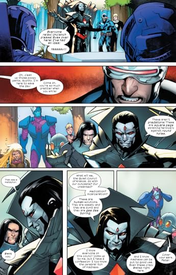 This was an okay book. It does try to address the issue of opening Krakoa to all mutants, good and bad and murderers alike, but it does it in such a hamfisted way that I could only shake my head. The selection of this team specifically is weird, like why is Havok even here? Why did not one person except his brother question why he nearly murdered a few humans and then didn't realize what he'd done? Hello?? You're just going to throw him on the Bad Guy team instead?