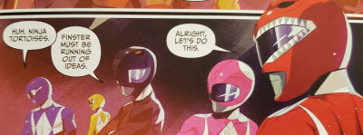 A great book, though I like the original Power Rangers team, I really loved the original Turtles. I am really glad the TMNT had a lot of time here. Their have been good and bad versions of both team, I really think the best version of both were chosen here.