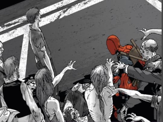 I read this for two reasons: Deadpool has captured my interest for the time being, and Walking Dead. Just for that, I'd say these issues really it the spot. It was both dark and funny, and depressing. There were times where I wondered if Deadpool is able to take anything serious, but I think he can, in his own way. I'm starting to think Deadpool cracks jokes to keep himself from going even more insane. He did have his serious moments.