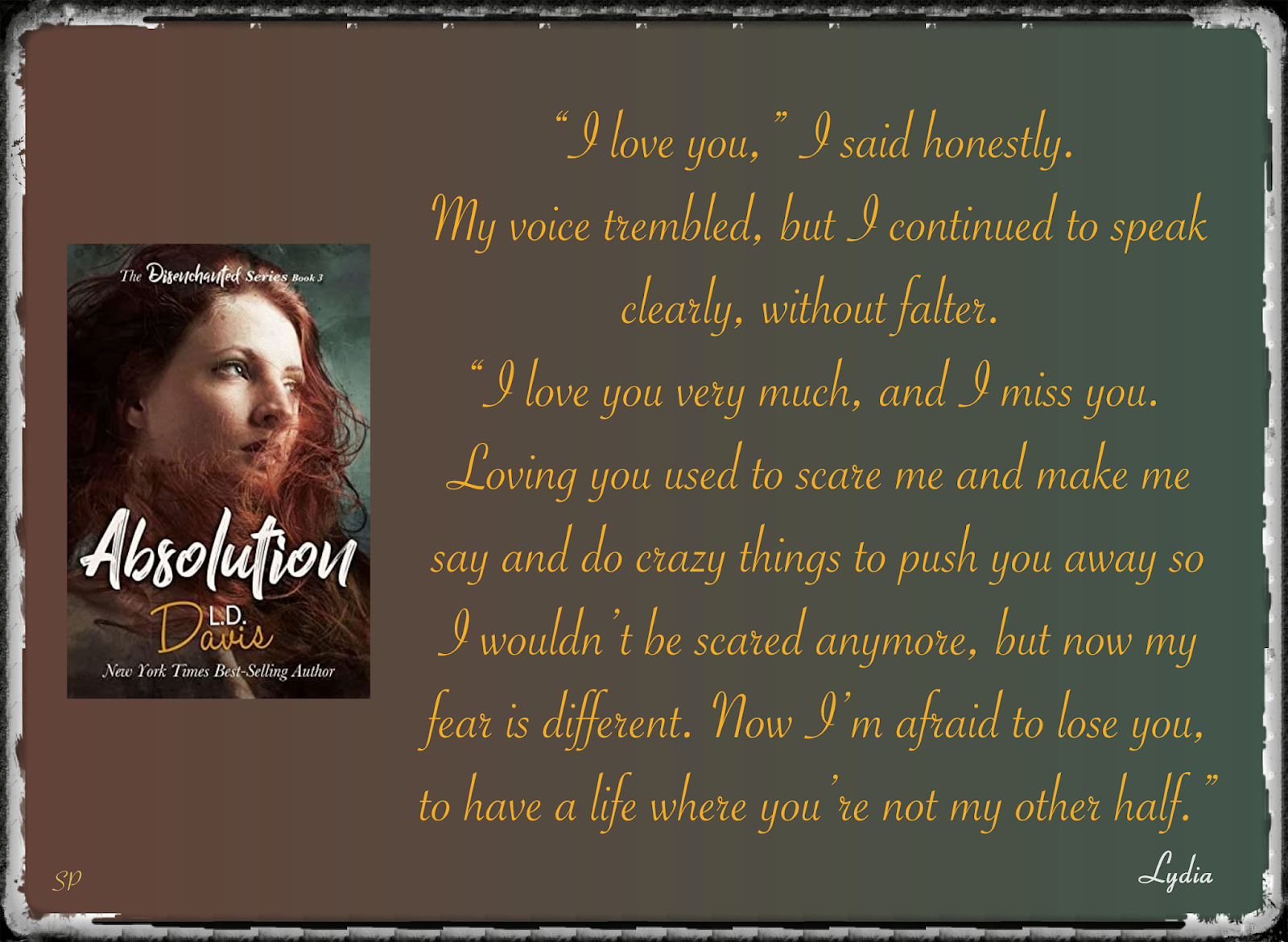 Since reading Disenchanted, I became addicted to the drama surrounding Marco and Lydia's lives. So much passion, heartache, and regret consumed these characters in the first two installments, I was eagerly awaiting its conclusion and incredibly anxious for this finale. Absolution did not disappoint and, in my opinion, the best read of the series. An erotic romance filled with extreme relationship angst L.D. Davis set me on a volatile roller-coaster ride, which had me on edge, as she both shattered and mended my heart. A testament to this author's talents, my emotions were twisted into knots, and I loved every nail-biting and soul-crushing moment.