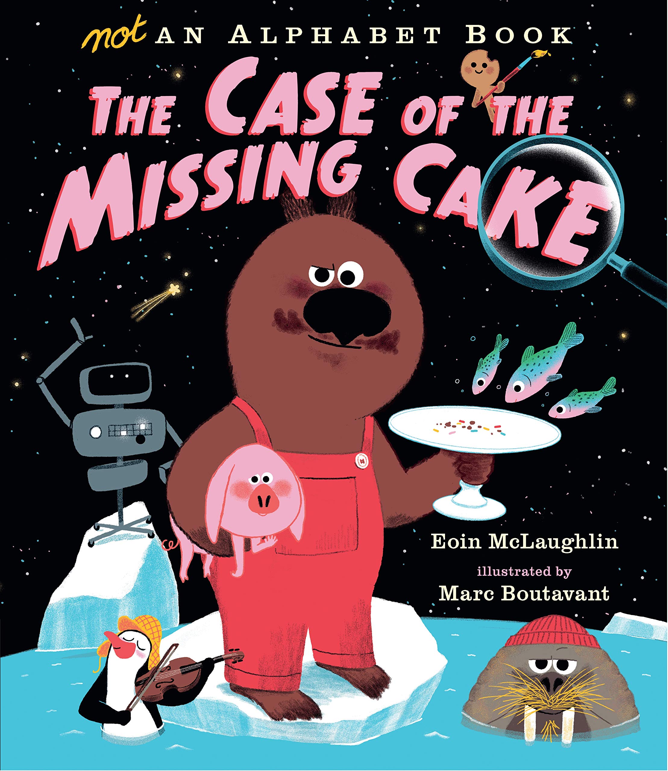 Bear introduces this alphabet book pleading with the readers to help him catch the culprit who stole the cake from the C page. As readers go through the alphabet of pages, clues wrack up, but can they find the real culprit?