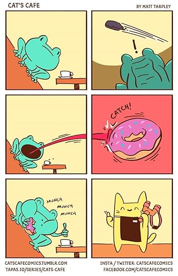 This adorable comic collection by Matt Tarpley is lovely! It's the type of book you sit down with a cup of tea and a blanket and just feel good with. The illustrations are simplistic, but it only adds to the fun and nostalgia of this book. It gave me childhood cartoon vibes (but easily enjoyable by an adult audience)! The stories are sweet, short and highly amusing, leaving me giggling along the way. Honestly, it's the kind of positivity the world needs right now: funny cats.
