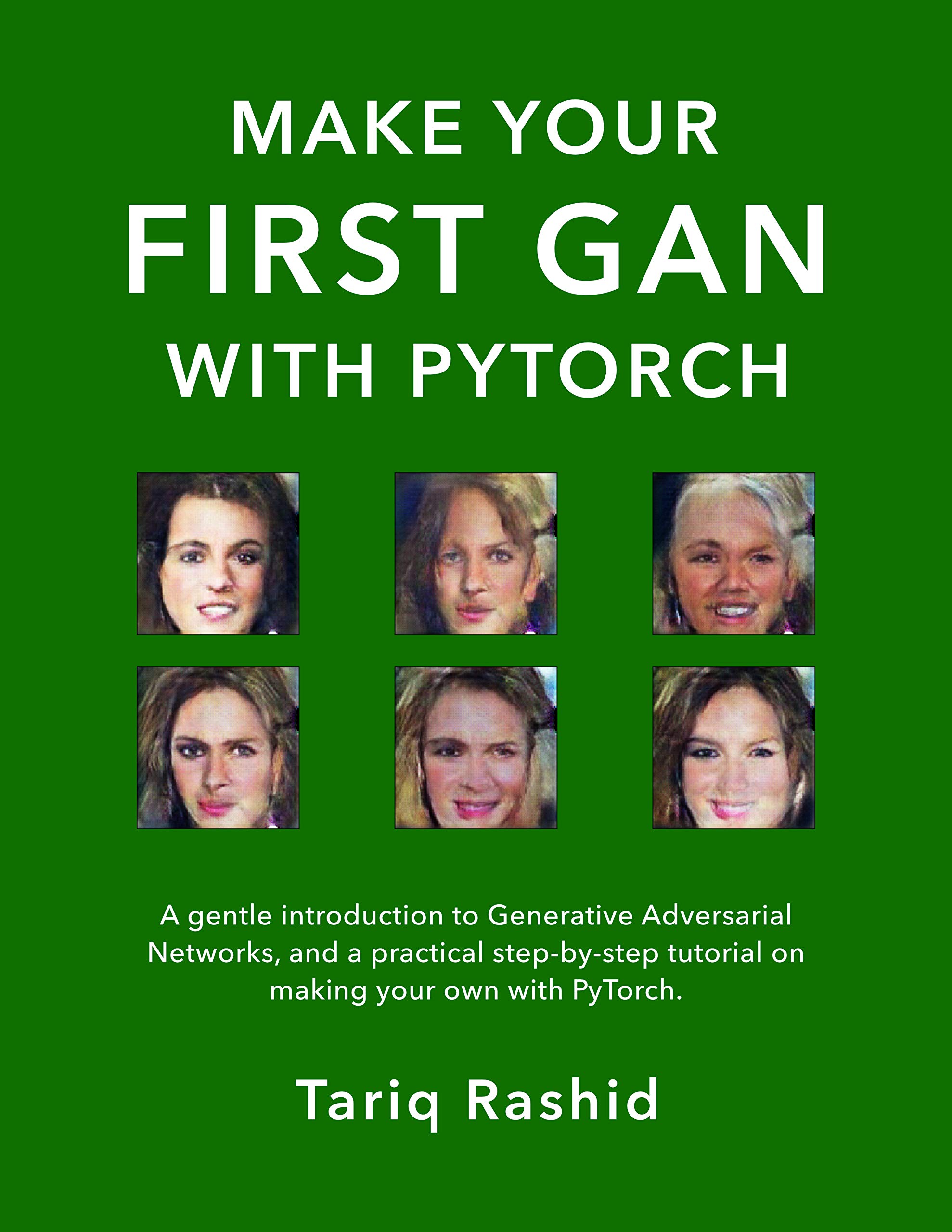 A gentle introduction to Generative Adversarial Networks, and a practical step-by-step tutorial on making your own with PyTorch. This beginner-friendly guide will give you hands-on PyTorch basicsdeveloping your first PyTorch neural networkexploring neural network refinements to improve performanceintroduce CUDA GPU accelerationIt will introduce GANs, one of the most exciting areas of machine the concept step-by-step, in plain Englishcoding the simplest GAN to develop a good workflowgrowing our confidence with an MNIST GANprogressing to develop a GAN to generate full-colour human facesexperiencing how GANs fail, exploring remedies and improving GAN performance and stabilityBeyond the very basics, readers can explore more sophisticated GANs for generated higher quality imagesconditional GANs for generated images of a desired classThe appendices will be useful for students of machine learning as they explain themes often skipped over in many ideal loss values for balanced GANsprobability distributions and sampling them to create imagescarefully chosen examples illustrating how convolutions worka brief explanation of why gradient descent isn't suited to adversarial machine learningAll code is available publicly as open source on github.