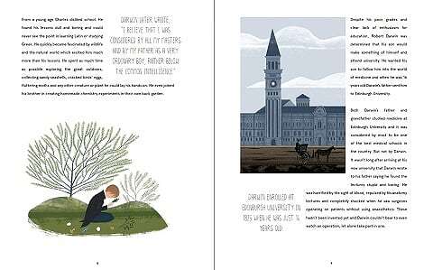 Beautifully illustrated and a great introduction to Darwin’s story. Although intended as a kids book, the content is accessible to all ages. There is plenty of text throughout the book, making it more suitable for older kids to read by themselves.
