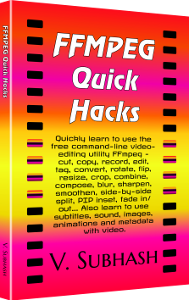 Quickly learn to use the free command-line video-editing utility FFmpeg - cut, copy, record, edit, tag, convert, rotate, flip, resize, crop, combine, compose, blur, sharpen, smoothen, side-by-side split, PIP inset, fade in/out... Also learn to use subtitles, sound, images, animations and metadata with video.