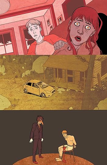 There's something oddly soothing about these comics. To delve into this world of sheer absurdity and nihilism and see that, though there may be this supernatural battle between good (the cowboy in black) and evil (the ice cream man), evil always wins--or, at the very least always finds a way to wheedle inside the heads of humans and turn them evil--creates this sense of relief. Let me explain: for someone who doesn't believe in some cosmic grand plan or who doesn't have faith, seeing all the objective bad in the world--climate collapse, hunger, suffering, etc.--and hearing shit like "God always has a plan" or "everything happens for a reason" or "everything will be okay in the end and if it's not okay then it's not the end" can put a massive amount of pressure on them. Pressure to ignore reality and "just be happy" because everything is intrinsically good and good things happen to good people and it'll all work itself out.