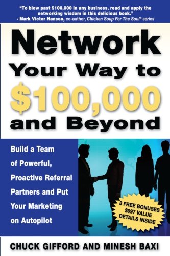 Build a Team of Powerful, Proactive Referral Parners and Put Your Marketing on Autopilot! "To blow past $100,000 in any business, read and apply the networking wisdom in this delicious book".- Mark Victor Hansen, co-author, Chicken Soup For The Soul series A must-read for any sales professional and business owner who wants to reach the heights of success. Rick Ruby, Principal, Golden Mortgage and The CORE Training and Coaching for top achievers in Mortgage and Real Estate (www.TheCore.tv) If you are too busy to find time to promote your business, then master the principles of Power Networking to get more from less. Rick Frishman, co-author of bestsellers like Networking Magic and Author 101 series (www.rickfrishman.com) "Here is a superb resource for any business owner or executive who wants to quickly rise to a whole new level of business and financial success. A great book. Bill Brooks, bestselling author of The New Science of Selling And Persuasion (www.billbrooks.com) The phenomenal success of Automation Alley, a high-tech business networking organization in Oakland County, MI is based on the principles of Power Networking. Similarly you can grow your business dramatically by applying the same principles taught in this book. - L. Brooks Patterson, Oakland County Exec,, MI "Every business owner or executive can profit from this book's exceptional insights into how to grow your business using principles of Power Networking. Take advantage of it now. Sheri Heiney, Exec. Dir., Rochester Regional Chamber, MI Networking can be the fastest and least expensive way possible to build your business, but there are secrets you must know to make it work. In Network Your Way To $100,000 And Beyond, Chuck Gifford and Minesh Baxi explain step-by-step three of the most important keys to networking developing referral partnerships, harnessing the power of structured networking groups, and building relationships with the people you meet. If you've been attending networking and leads groups without results, you need this book! - C.J. Hayden, Author, Get Clients Now! I ve trained and coached thousands of business owners over the last 7 years and Minesh Baxi is by far the smartest and most generous networker I ve ever met. Not only does he have great ideas, I ve watched him use these ideas to sky-rocket his income over the last 3 years. I ve even stolen some of his ideas to share with my students and clients and watched them work like a charm every time. Minesh is the #1 best source for networking ideas! - Christian E. Mickelsen CEO, Small Biz University www.SmallBizU.com If you are a small business owner or professional who wants to rise quickly to a whole new level of financial success, this book is for you. Buy it and prosper. John Eggen President, The Mission Marketing Mentors, Inc. www.missionmarketingmentors.com